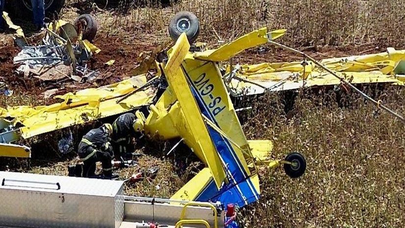 Corpo de Bombeiros realiza desencarceramento de corpo de vítima que ficou presa em ferragens após queda de avião agrícola