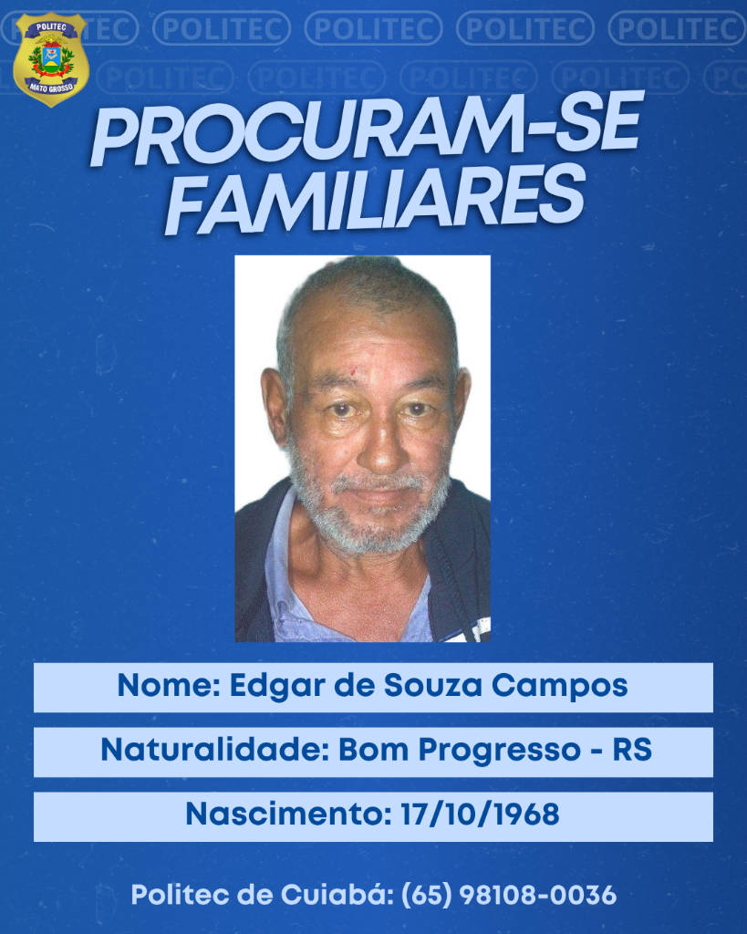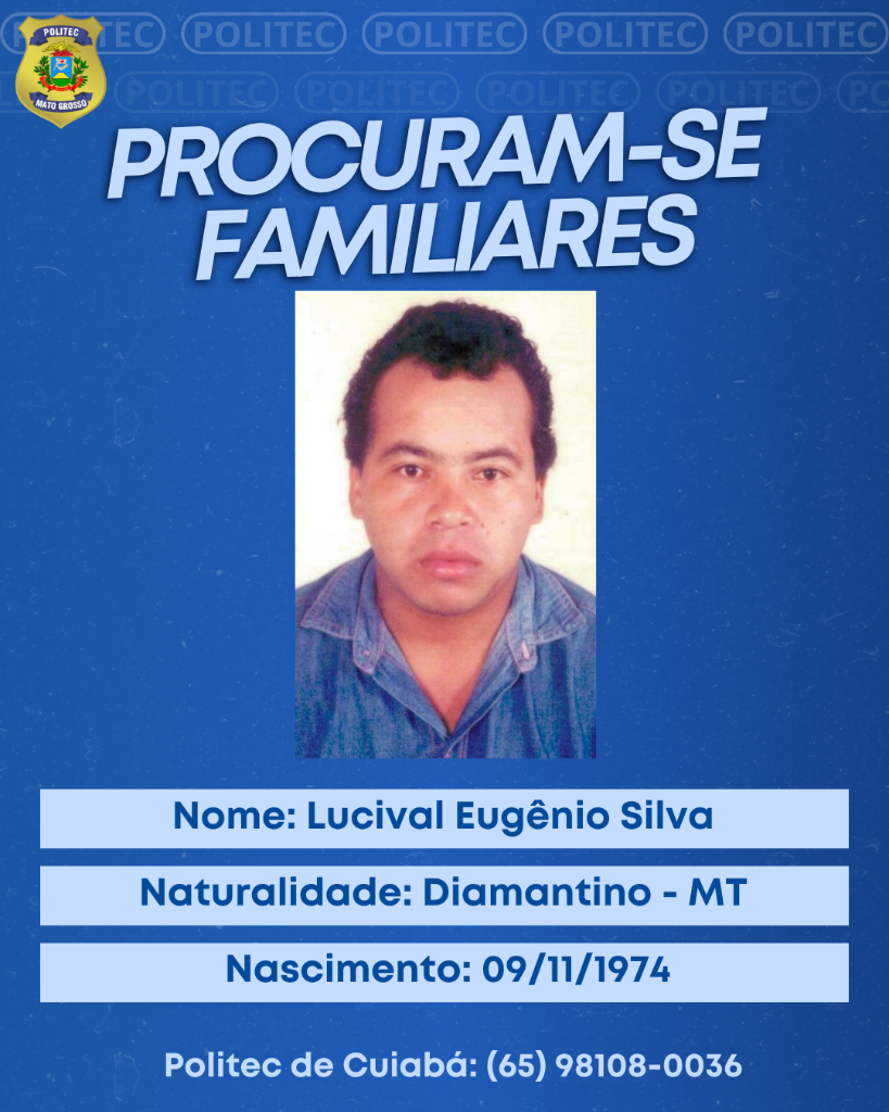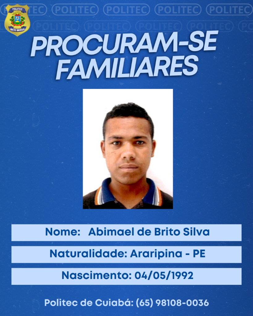 A Diretoria Metropolitana de Medicina Legal procura por familiares de quatro vítimas periciadas na unidade para que seja feita a liberação dos corpos para o sepultamento. Dentre os identificados, estão: 1 – Lucival Eugênio da Silva, nascido em, filho de Vitalina Padilha da Silva e Lorival Eugenio da Silva e natural de Diamantino. 2 – Abimael de Brito Silva, de 33 anos, natural de Araripina (Pernambuco). É filho de Maria Aparecida de Brito Silva e Pedro Matias. 3 – Ariston de Almeida Neto, nascido em 03/06/1982 em Nanuque (Minas Gerais). 4 – Edgar de Souza Campos, nascido em 17/10/1968, em Bom Progresso (Rio Grande do Sul). A instituição reforça a importância do apoio da população para a localização dos familiares das vítimas, a fim de viabilizar os trâmites legais. Familiares da vítima podem procurar a DMML, pessoalmente no endereço Rua A1, Dom Bosco, Cuiabá-MT, ou pelo telefone: (65) 98108-0036, para o registro da declaração de óbito e demais trâmites legais.