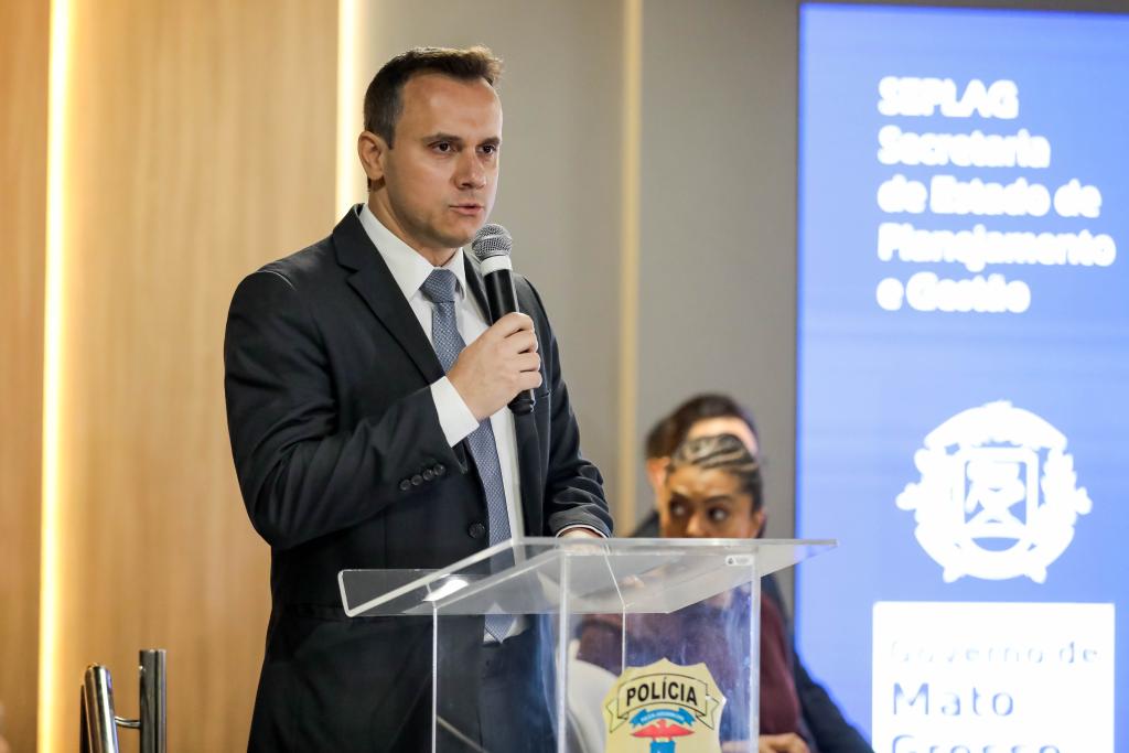 Aprovado em outro concurso no Paraná, o investigador Vinicius Iori falou sobre a felicidade de retornar ao Estado de origem e poder servir na Polícia Civil de Mato Grosso. “Eu estava servindo na Polícia Civil do Paraná. Atuei lá por alguns meses e será uma felicidade imensa contribuir com a experiência que adquiri, agora, na Polícia Civil do meu estado”, disse. Além do secretário-adjunto e da delegada-geral, a solenidade de posse contou com a presença da senadora Margareth Buzetti, além de outras autoridades da Polícia Civil, de órgãos de segurança e da sociedade civil organizada. Aula inaugural Logo após a solenidade de posse, os 124 policiais civis participaram da aula inaugural. Na ocasião, a delegada-geral apresentou todo o corpo diretor da instituição incluindo o alto escalão, delegados regionais e demais estruturas de direção e coordenação do órgão.