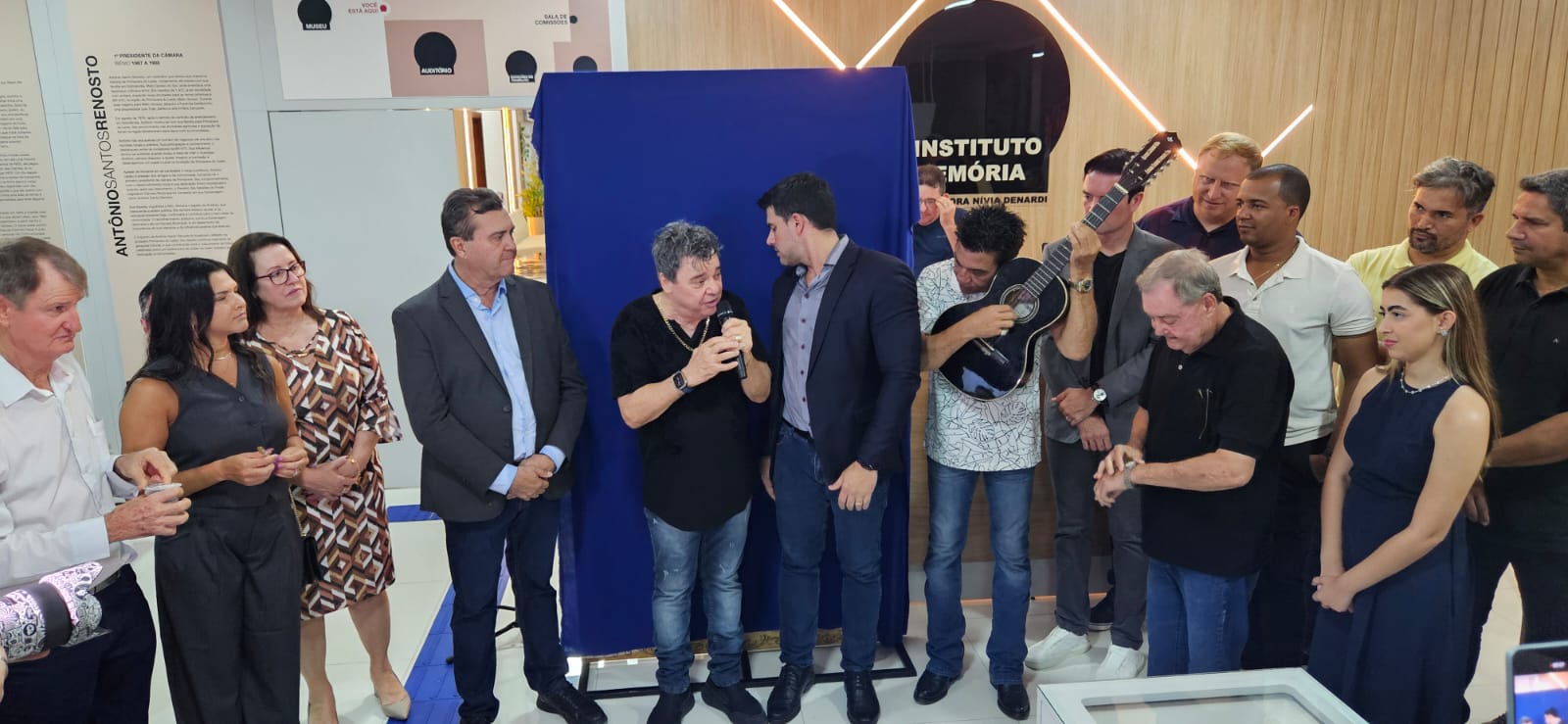 Coordenadoria de Comunicação - Prefeito Sérgio Machnic participa de homenagem à dupla Cézar e Paulinho feito pela Câmara O prefeito Sérgio Machnic participou nesse domingo (11) de uma solenidade em homenagem à dupla sertaneja Cézar e Paulinho realizada pela Câmara Municipal de Primavera do Leste. Os artistas têm uma ligação histórica com a cidade e terão uma viola doada por eles exposta no Instituto Memória Nívea Denardi, que fica anexo ao prédio do Legislativo. O gestor municipal lembrou que a dupla já havia sido homenageada com o título de cidadãos primeverenses e agora terão a sua ligação eternizada por meio da incorporação da viola doada ao acervo do Instituto. “Em agosto de 1988 eles cantaram aqui em um evento beneficente, foram eles que deram o nome de Asa Delta ao nosso estádio, que é o nome de uma fazenda que o Cézar tem aqui próximo. Eles ajudaram muito a cidade e sempre que têm um tempinho eles veem até Primavera e eles vivem no coração da população primaverense e toda homenagem que se faz para eles é merecida. Fico lisonjeado como prefeito poder participar desse momento”, declarou Sérgio Machnic. O presidente da Câmara Marco Aurélio contou que a viola que Cézar e Paulinho estão doando fará parte do acervo do Instituto Memória Nívea Denardi e será parte do patrimônio histórico da cidade. “Na verdade eles estão devolvendo uma viola que eles ganharam aqui mesmo, lá atrás, e agora a gente tem o prazer de receber ela de volta. Nada mais justo do que fazer um uma simples, uma singela homenagem para essa dupla que já fez e ainda está fazendo um trabalho sensacional por nós. Eles já fazem parte da nossa história e agora ficarão eternizados por meio dessa viola”, externou. Visivelmente emocionado, o cidadão primaverense Paulo Roberto Franco, o Paulinho, declarou ser um privilégio receber a homenagem. “A gente conhece o pessoal aqui de Primavera de longa data já e a gente até fez um jogo aqui uma vez para o time do Juventude. Meu irmão tinha uma fazenda aqui perto, a gente sempre vinha para cá. Então a gente criou uma raiz muito importante aqui em Primavera, fizemos muitos amigos e é sempre um privilégio para a gente poder encontrar esses amigos”, afirmou o artista. “A ideia de fazer esse memorial aqui que é muito importante, pois a cidade ou estado ou a família que não tem memória não tem cultura e a cultura faz parte da nossa vida. Esse espaço tão pequeno no tamanho mas grande no conteúdo é muito importante e Primavera merece um lugar desse. Eu particularmente nunca tinha visto um ambiente desse e estou muito feliz muito satisfeito em saber que o povo de Primavera tem memória”, completou Paulinho. Da mesma forma, Sebastião Cézar Franco, o Cézar, também declarou estar muito contente em ter o nome da dupla que compõe com seu irmão eternizada na história da cidade. “Eu acho muito importante, soma muito, porque é uma prova que a gente plantou boas sementes e agora colhe bons frutos. É o que acontece aqui em Primavera do Leste e por todo lugar que a gente passa. Graças a Deus encontramos bons amigos por aqui e estou muito feliz com tudo”, contou. O evento também contou com a presença da vice-prefeita Iva Viana, de vereadores e outras autoridades, além de inúmeros populares. Entrega no palco Para dar ainda mais brilho à incorporação da viola ao acervo do Instituto Memória, a dupla fez questão de autografá-la durante o seu show realizado em homenagem aos 39 anos da cidade e entregá-la em mãos do prefeito Sérgio Machnic e do presidente da Câmara Marco Aurélio no palco.