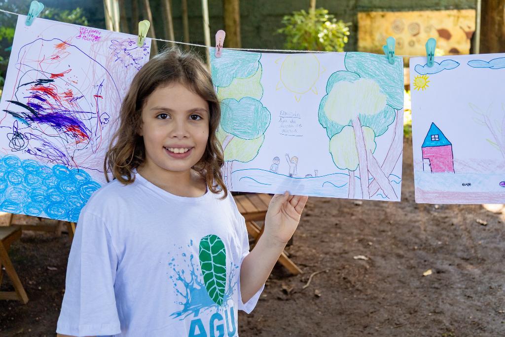 A oficina de desenho atraiu o público infantil presente, que participou da atividade junto com os pais e depois teve os trabalhos expostos em um varal. Eduardo, de 10 anos, esteve acompanhado da mãe e contou que adorou desenhar sobre a água e ainda deixou um recado para população: “Tem que se preocupar com a falta de água, senão nem vai ter água para as pessoas engarrafarem para beber”.