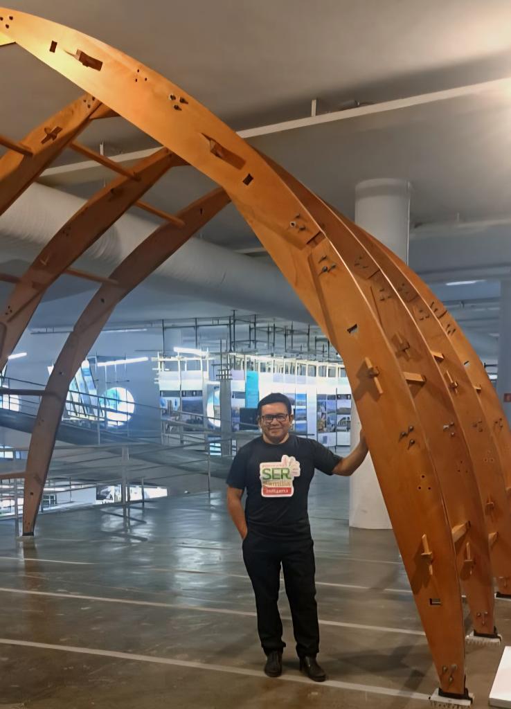 Foto: Arquivo Pessoal “Participar da Bienal foi ótimo. Discutimos os desafios climáticos na construção civil e percebi o quanto a arquitetura indígena tem a contribuir, já que nossas casas são sustentáveis e respeitam a natureza”, contou. Ele destaca que o apoio foi essencial para essa conquista. “A Setasc foi essencial, pois me deu a oportunidade de estar lá ao disponibilizar passagens. Sou muito grato, porque isso me permitiu conhecer outros profissionais e ampliar o diálogo sobre sustentabilidade”, afirmou. Ao falar sobre sua atuação, Jucimar reforça o valor do conhecimento tradicional. “A âtâ (casa) Kurâ Bakairi carrega ancestralidade e tecnologia. Nossas construções respeitam o território, o tempo e até as fases da lua. É um conhecimento profundo que precisa ser valorizado”, disse.